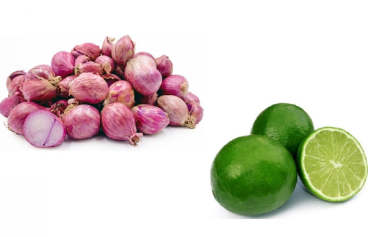 - Pha 1 muỗng canh nước ép hành tím với 1 muỗng canh nước cốt chanh.